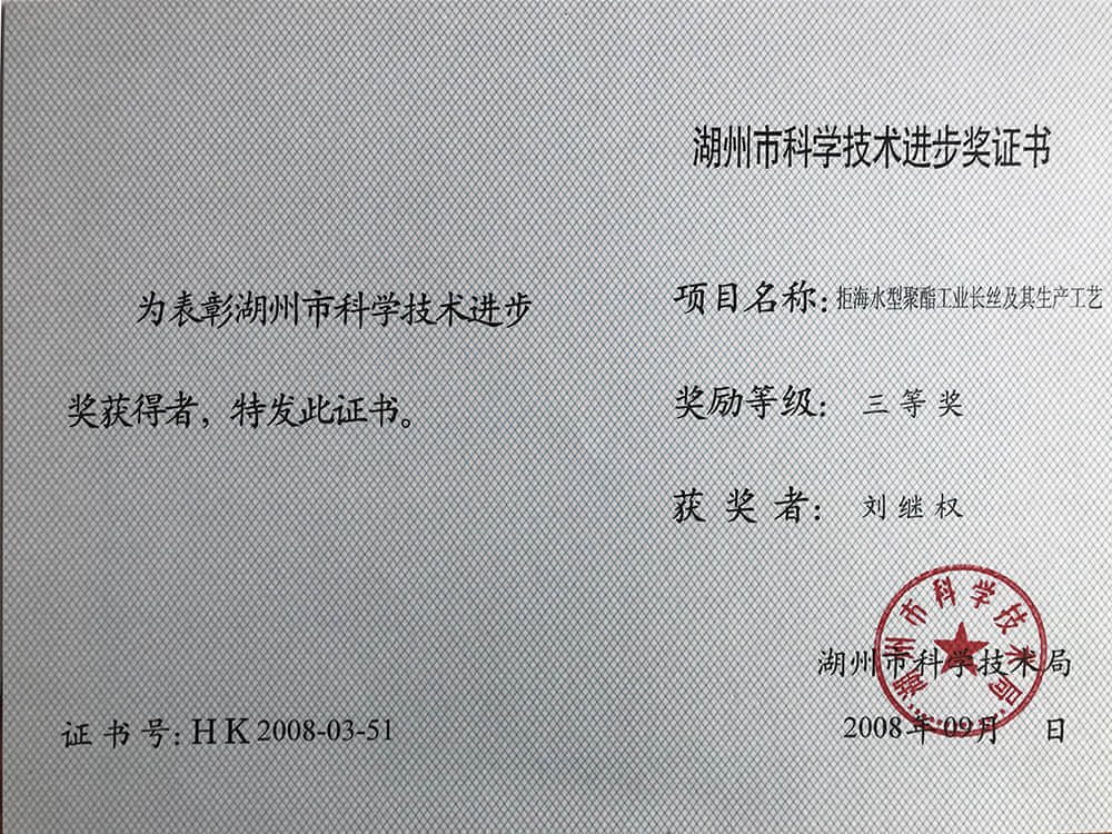 2008湖州市科技進步獎三等獎-劉繼權