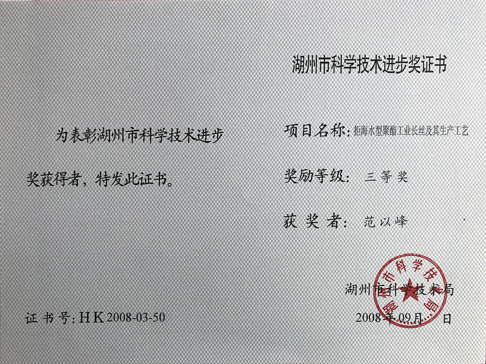 2008湖州市科技進步獎三等獎-范以峰